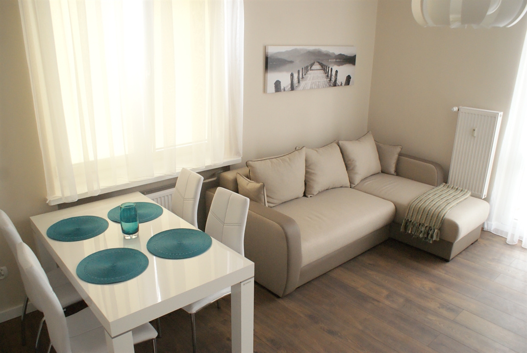 W pełni umeblowane i urządzone mieszkanie o podwyższonym standardzie dla jednej lub dwóch osób.