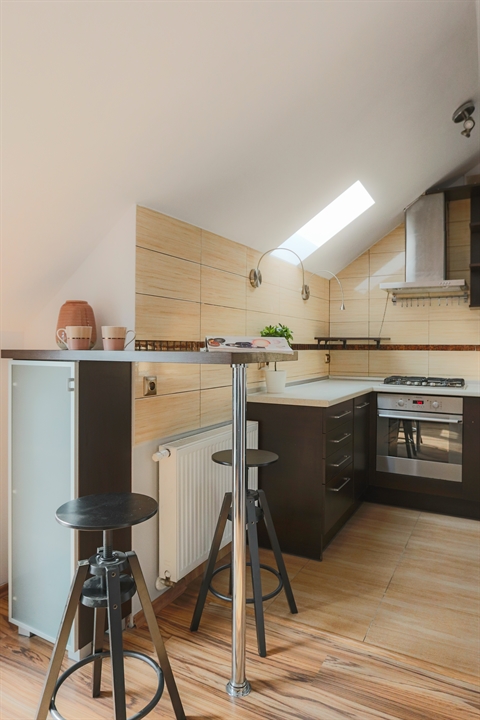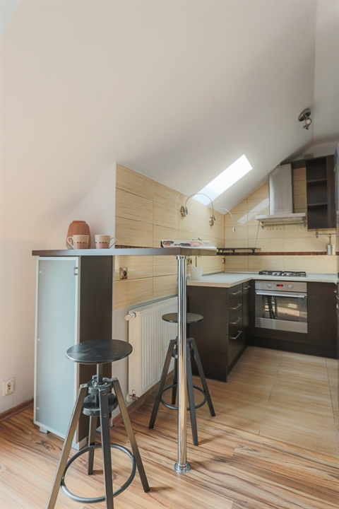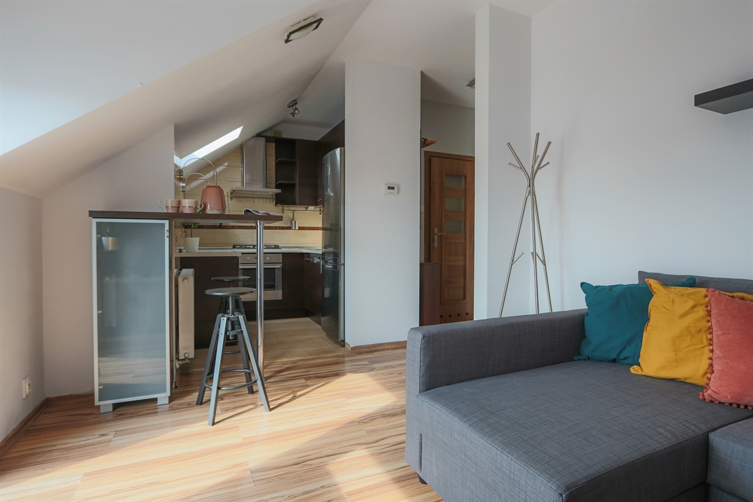 Przytulne mieszkanie na piętrze budynku w zabudowie szeregowej.