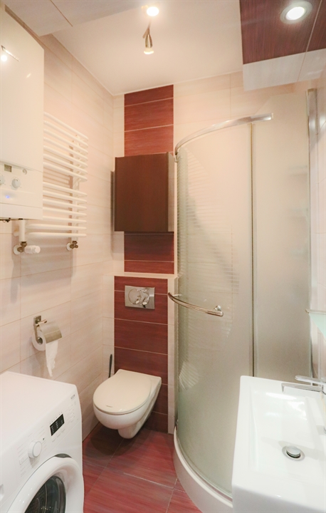 Mieszkanie skłąda się z przestronnego salonu z wydzieloną kuchnią, sypialni, łazienki i korytarza.