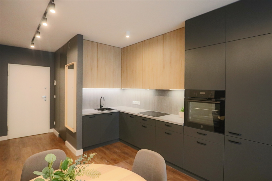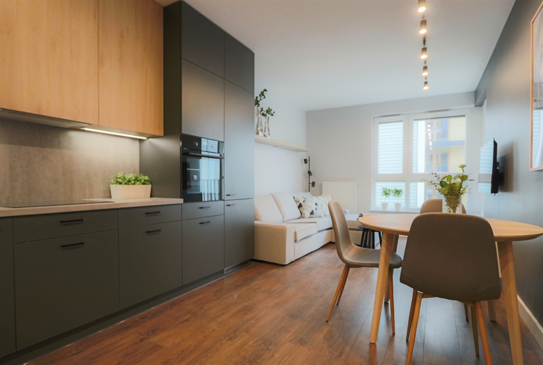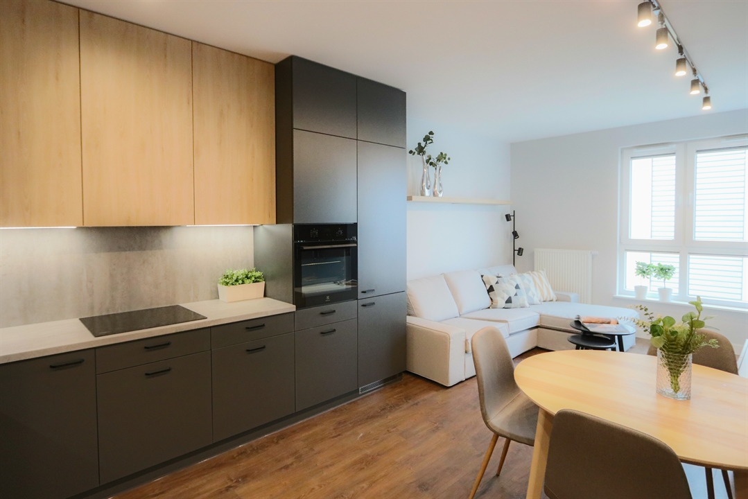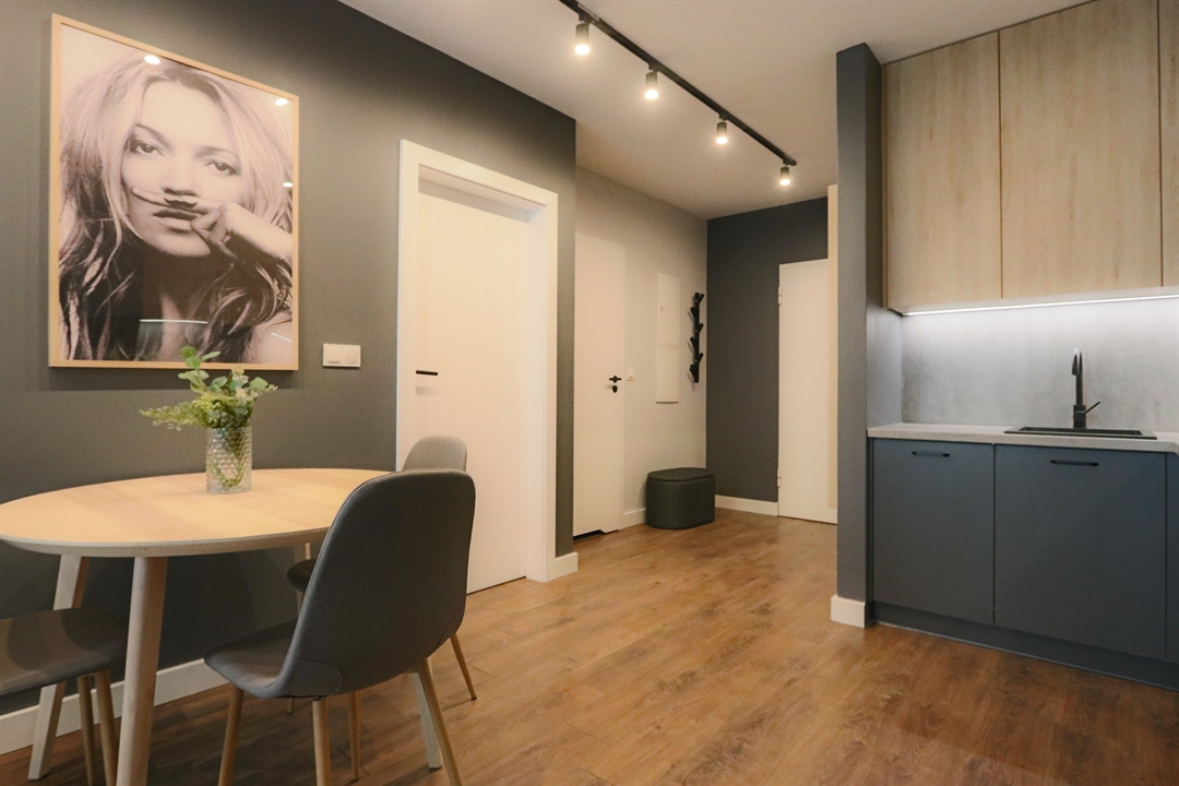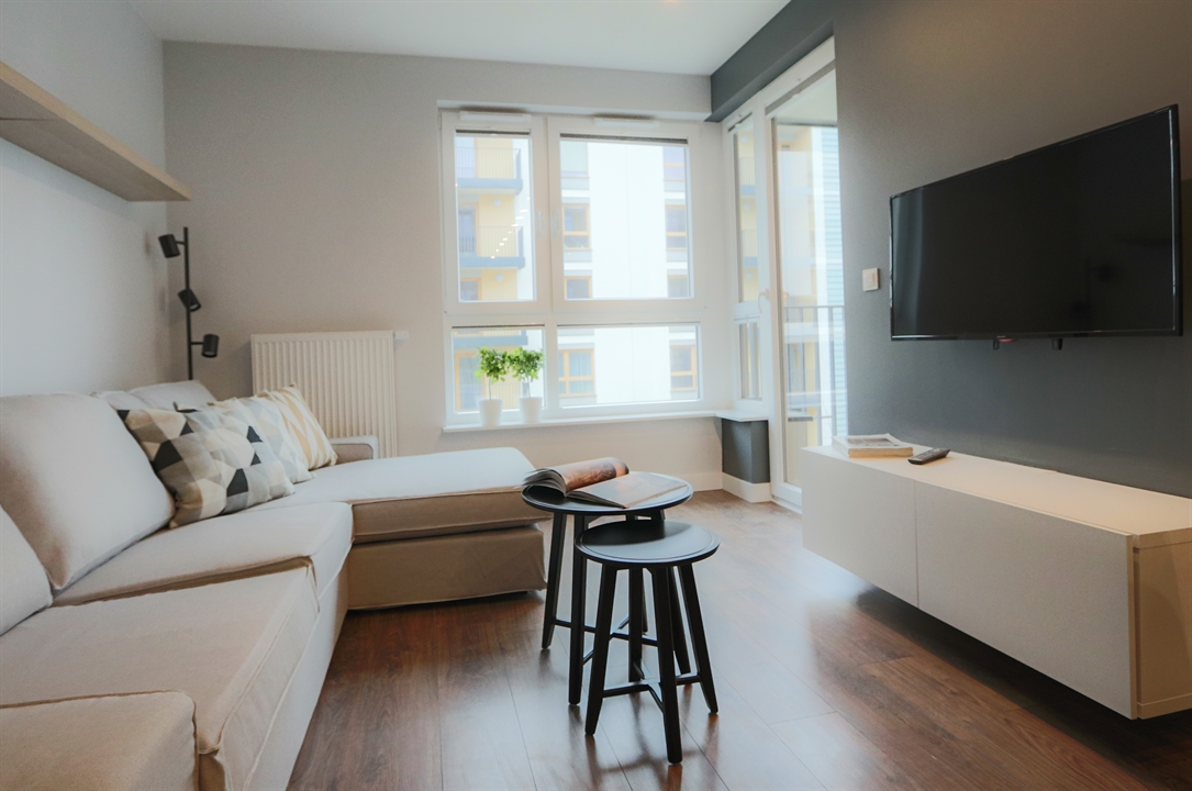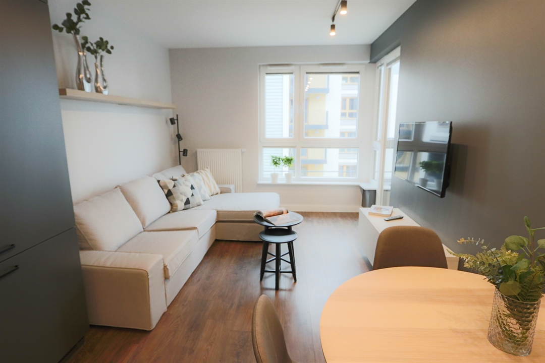 Komfortowo urządzone mieszkanie, o wysokim standardzie na nowym osiedlu "Nasze Jeżyce" przy ul. Szczepanowskiego. Zaprojektowane z przeznaczeniem dla jednej lub dwóch osób. Składa się z pokoju dziennego z aneksem kuchennym, sypialni, łazienki i korytarza. Pokoje są bardzo jasne dzięki dużej powierzchni okien. Aneks kuchenny wyposażony jest w komplet urządzeń dużego AGD (zmywarka, piekarnik, płyta grzewcza, lodówka). a w salonie znajduje się telewizor LCD 50 cali. W sypialni i korytarzu zaprojektowano duże szafy garderobiane. Przestronna jak na ten metraż mieszkania łazienka zawiera również pralkę. Mieszkanie usytuowane jest na drugim piętrze w czteropiętrowym budynku z windą i posiada duży balkon o powierzchni 8 m2, na który można wyjść zarówno z pokoju dziennego jak i z sypialni. Dostępne jest miejsce postojowe w podziemnej hali garażowej.