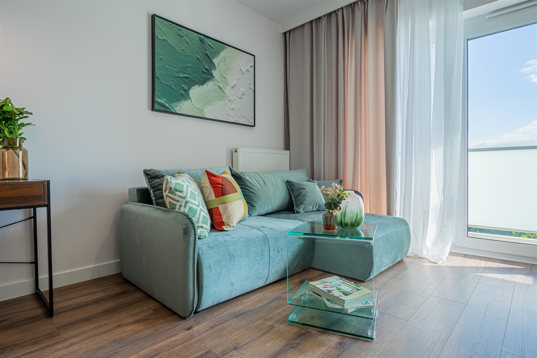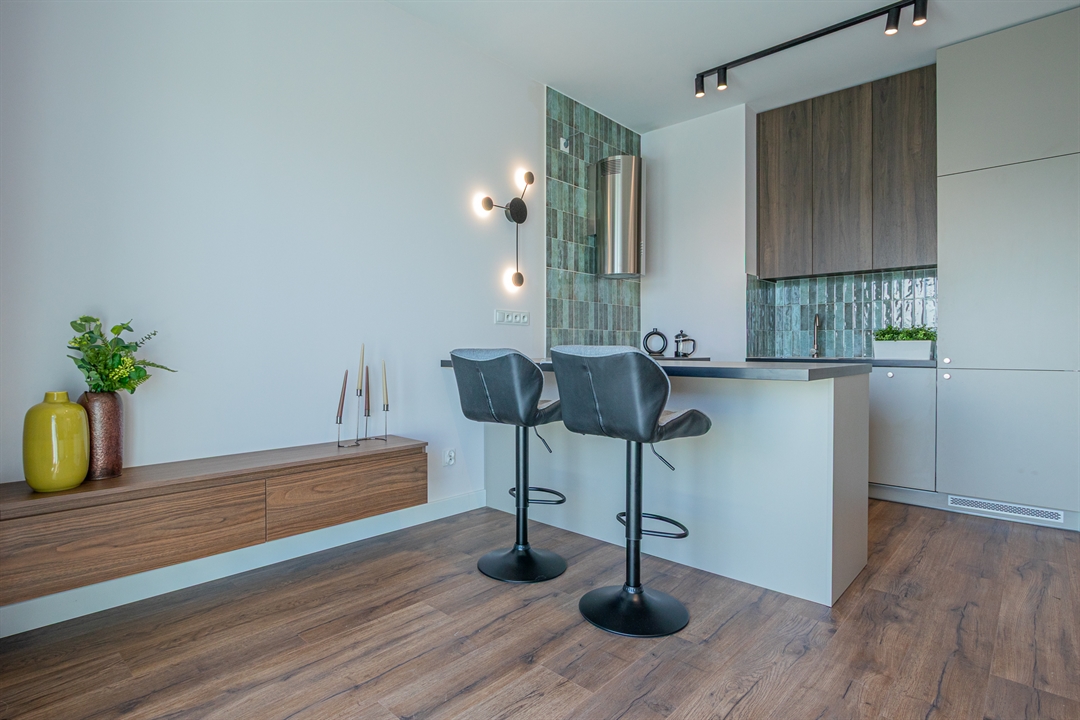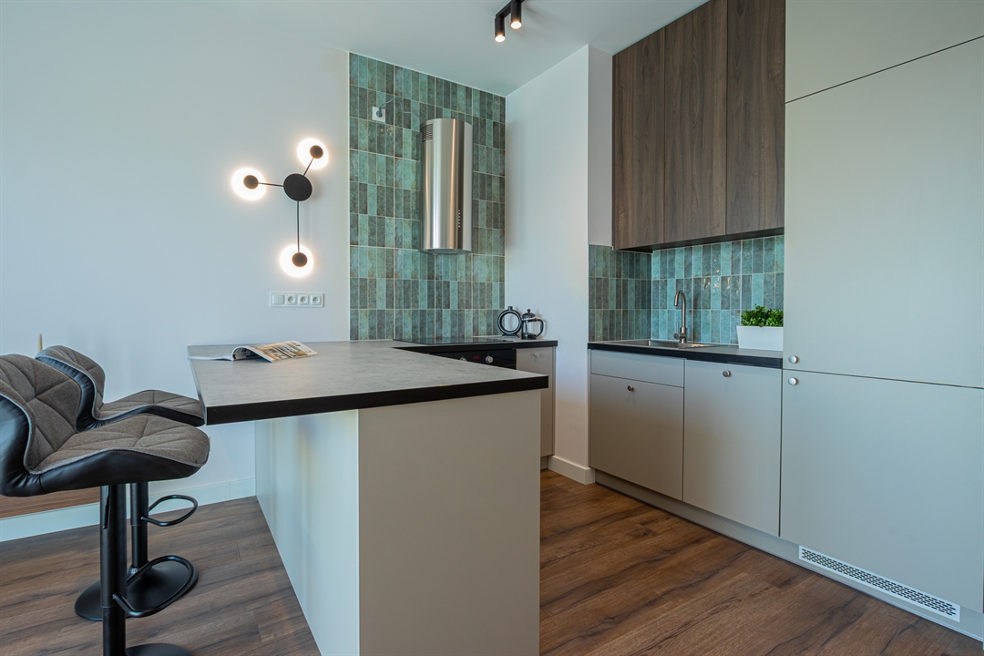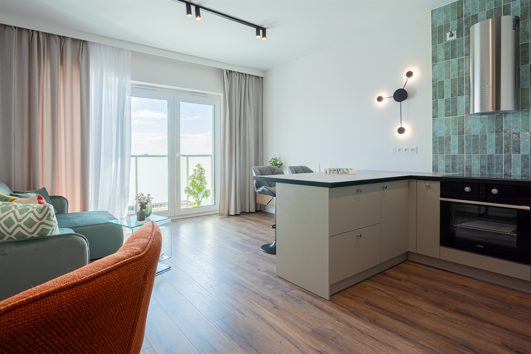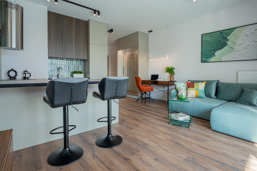 Mieszkanie o powierzchni 30 metrów kwadratowych zlokalizowane jest na ul. Hawelańskiej w Poznaniu (dzielnica Winogrady) i składa się z salonu z aneksem kuchennym, korytarza i łazienki. Wszystkie pomieszczenia są w pełni wyposażone