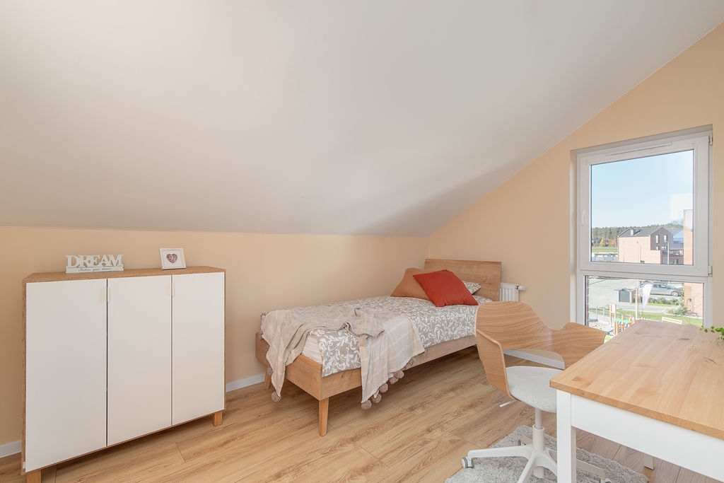 Na powierzchni 100 m² znajduje się aż 5 pokoi – przestronny salon oraz 4 niezależne sypialnie. Dodatkowo dom oferuje oddzielną, w pełni wyposażoną kuchnię, 2 funkcjonalne łazienki, dodatkowe WC, garderobę oraz 2 pomieszczenia gospodarcze. Szczegółowy rozkład pomieszczeń wraz z metrażami dostępny jest na rzutach w galerii ogłoszenia.