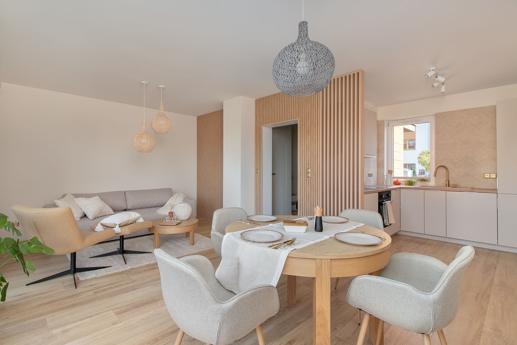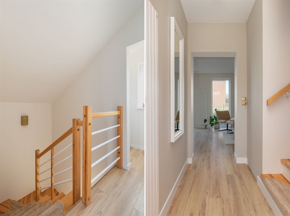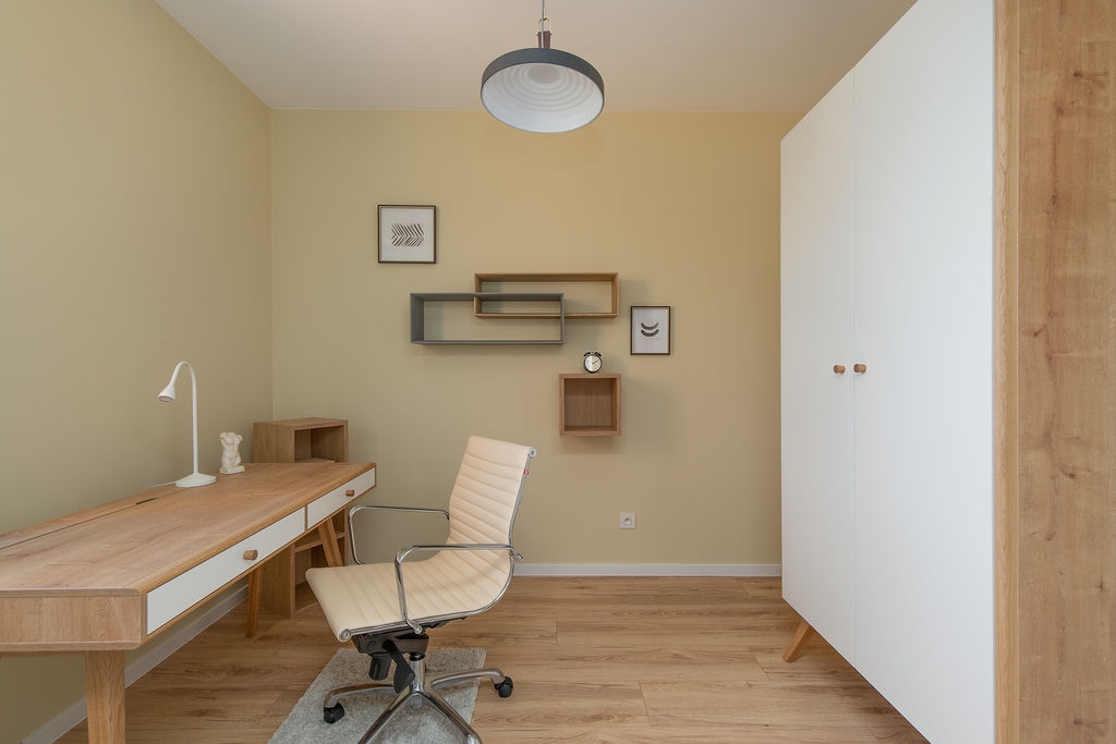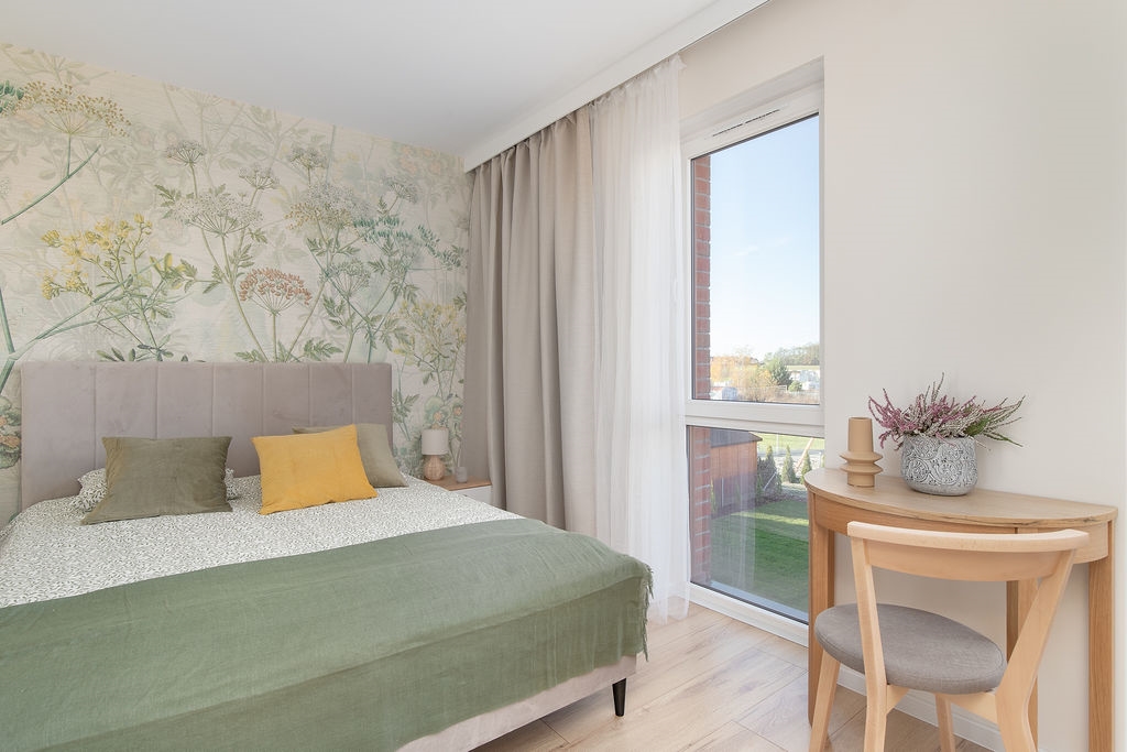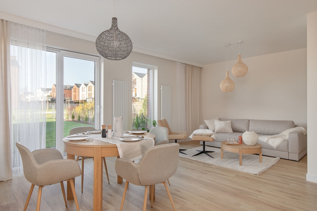 Dom jest kompletnie umeblowany i wyposażony, co pozwala na natychmiastowe wprowadzenie się. Wszystkie sypialnie posiadają łóżka oraz miejsca do przechowywania. Salon urządzony jest w nowoczesnym, komfortowym stylu, a dodatkowy pokój może pełnić funkcję gabinetu do pracy. Kuchnia wyposażona jest w niezbędne sprzęty AGD oraz zabudowę meblową.